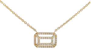 A modern interpretation of the table of an emerald cut stone. Interesting from all angles, this sparkling pave set diamond pendant necklace adds the perfect amount of shimmer to your neck stack.
