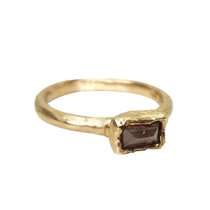 This *ONE OF A KIND*  stunning engagement ring is made with 14k yellow gold, set with a single baguette diamond