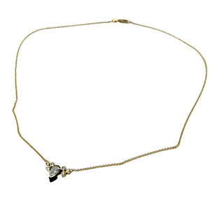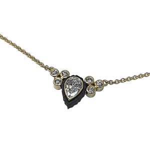 Chroma lab-grown diamond (7-stone) necklace with .42 ct lab-grown pearl-shaped diamond and .12 ct lab-grown white diamond on 1.3 mm gold cable chain. Yellow Gold + Cobalt Chrome. Chain is 16 Inches