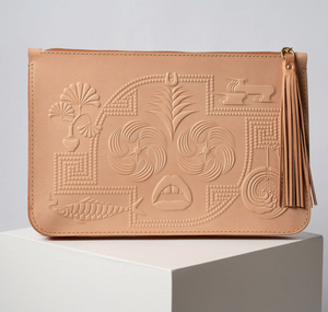 Measures 12 x 8 inches with an expandable gusset. Fully lined with interior leather pocket. Fine Riri brass zipper and shaggy tassel. Highest quality Wickett and Craig leather for a lifetime of mischief and pleasure. Lining material may vary.