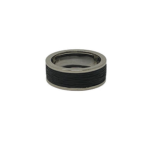 Pebble heavy wide center band in cobalt chrome with  18k white gold thin rails.