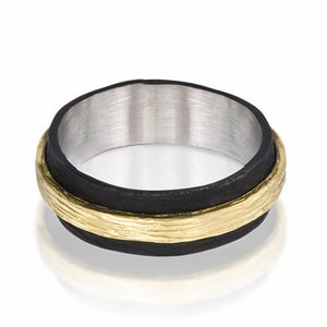 This band has a pebble raised center two tone band in 18k gold and cobalt chrome.  The band measures 6.25 mm wide.