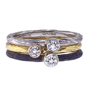 Pebble Stacking Ring + Diamond + 18k Yellow Gold