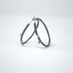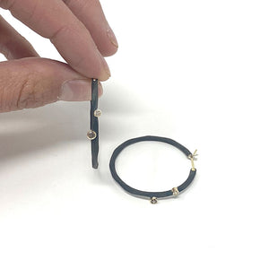 Rogue River Small Hoop Earrings with .06 ct tw white diamond and .10 ct tw cognac diamond with 18k hinged posts.  Hoops themselves are made from cobalt chrome and measure 1.3 inches.