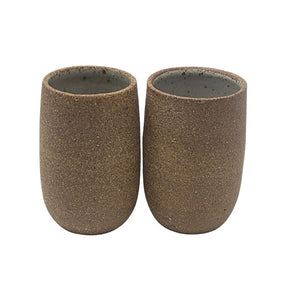 Handmade with raw rusty brown clay on the outside + clear light green glaze on the inside. These are the perfect Tumblers for any beverage on a warm sunny day. Due to the handmade nature of the tumbler they may vary slightly in size.