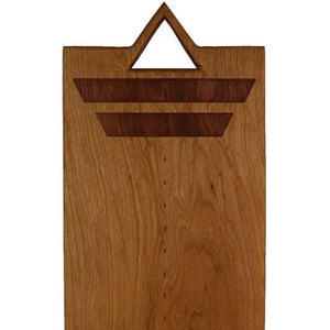 One of a kind handcrafted cutting board. Design is hand burned into the wood. Carved triangle handle on the top for display, hanging, or carrying. A perfect cheese board, sandwich board, or for cutting and serving fruits, meats or delicious pastry items. Beeswax and mineral oil finish. Smooth to the touch.  Cutting Board is made from Cherry Hardwood.