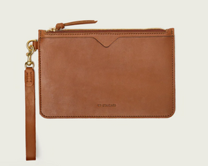 The leather wristlet is a streamlined carry for your essentials. When a bag is too much, the wristlet carries a phone, cards, and cash with ease and security.