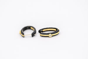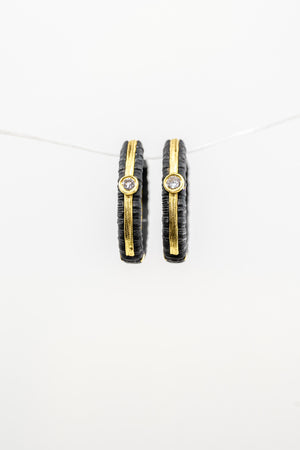 Bold Ridge oval hoops in 18mm inside out gold stripe with .10ct white diamonds.