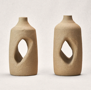 Form meets function meets fiction. Keep your literature in order and show off your modernist chops. Both purposeful and versatile, these bookends double as bud vases for any shelf, mantlepiece, or end table in raw ceramic.