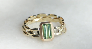 mint tourmaline (1.32C 8x4.8mm) with 14k yellow bezel setting