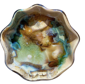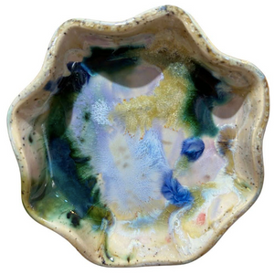 Small bowl for all your treasures - jewelry, accessories, and more! Approximately 4.5" in diameter.